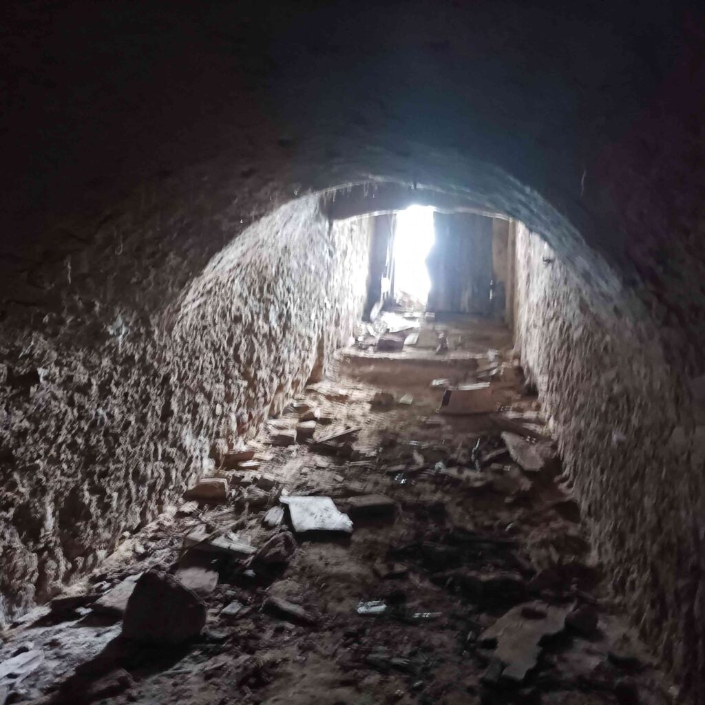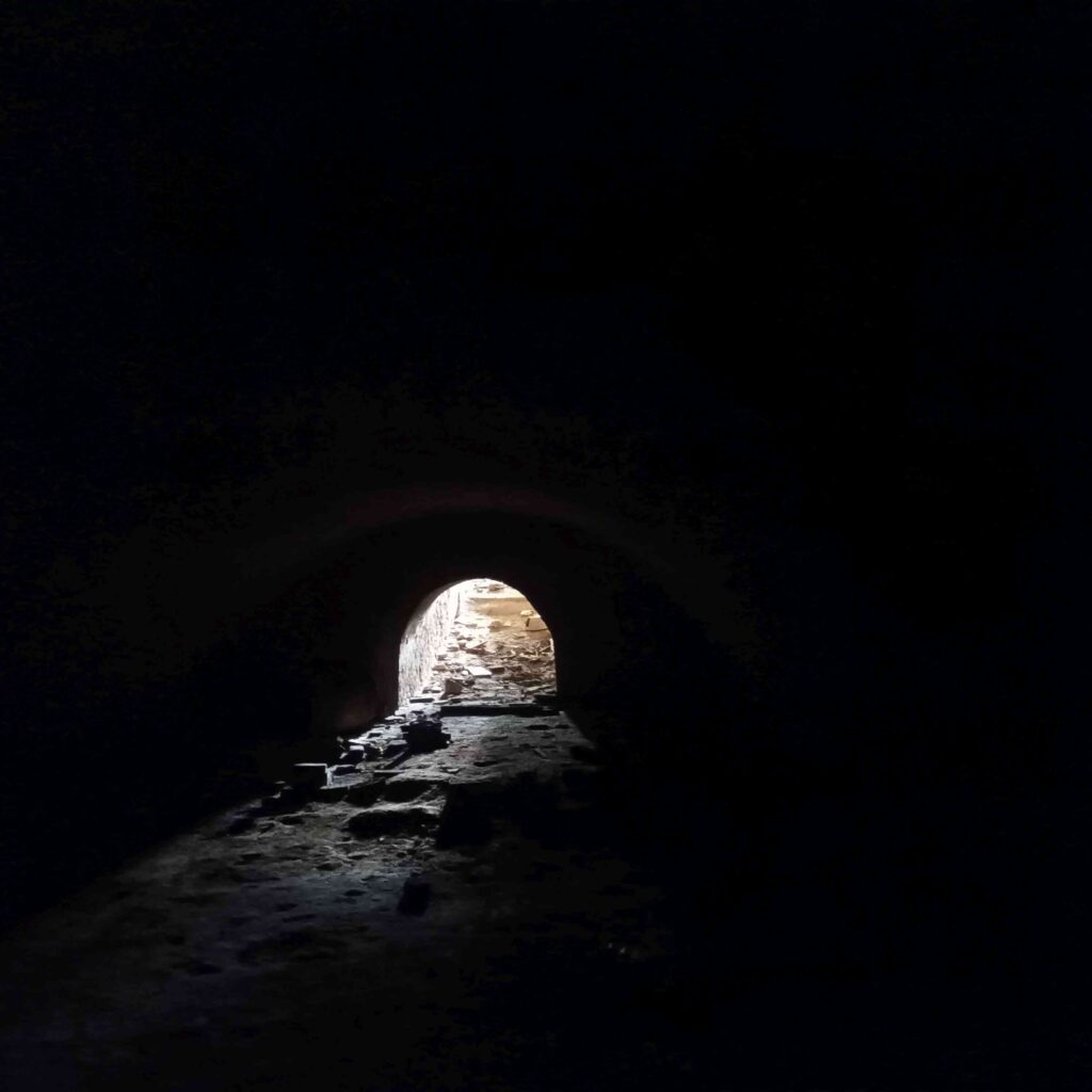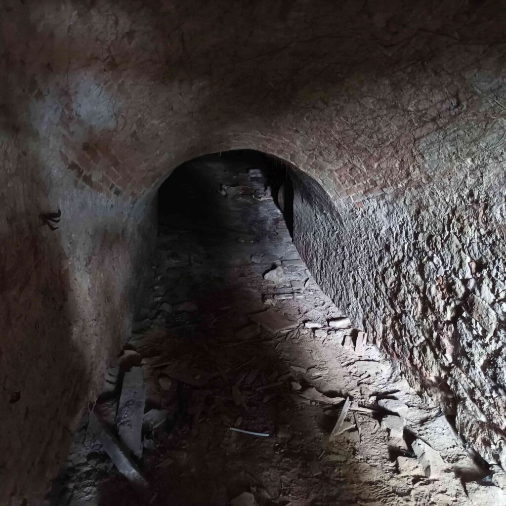 In einem versteckten Winkel nahe beim Schurlwirt in Pillichsdorf entdecken wir hinter einer offenen Tür den Zugang zu einem Tunnel, der uns hinab in ein finsteres Gewölbe führt. Ein alter Weinkeller, in dem noch ein großes Faß liegt. Das große Kellergewölbe scheint gut belüftet zu sein, Schimmel entdecken wir nicht. Am feuchten Lehmboden wächst ein Schwammerl. Unweit davon liegt ein Backzubehör aus vergangenen Zeiten.