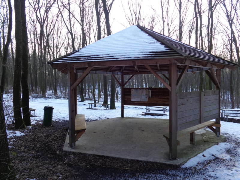 Bildeiche am Bisamberg 12. Februar 2019 Pavillon bei der Bildeiche am Bisamberg. Die ursprüngliche alte Bildeiche wurde in den letzten Jahren durch eine neue ersetzt.