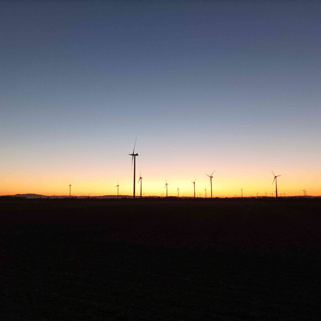 Weinviertler Sonnenuntergang 22. September 2025 Sonnenuntergang hinter den scheinbar endlosen Windrädern hinter den Feldern bei Helmahof.